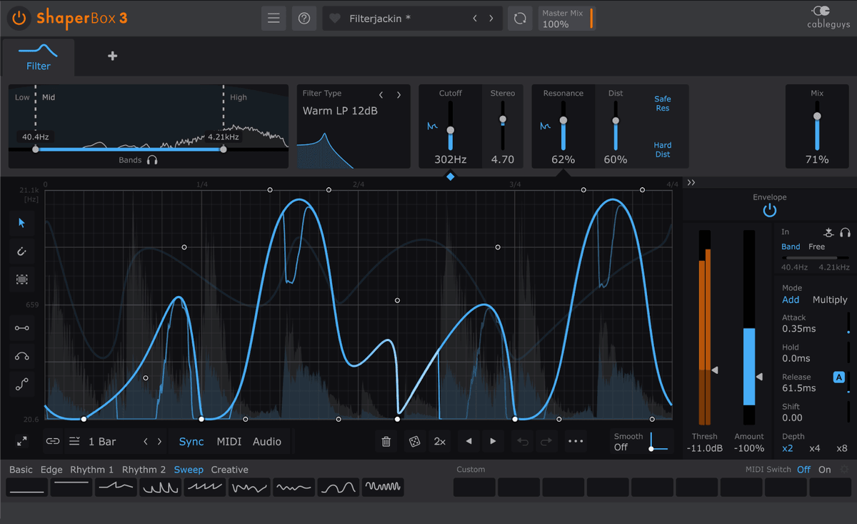 Design flowing cutoff patterns and juicy resonance sweeps – any shape you can imagine, just clicks away. It's easy, fast and fun.