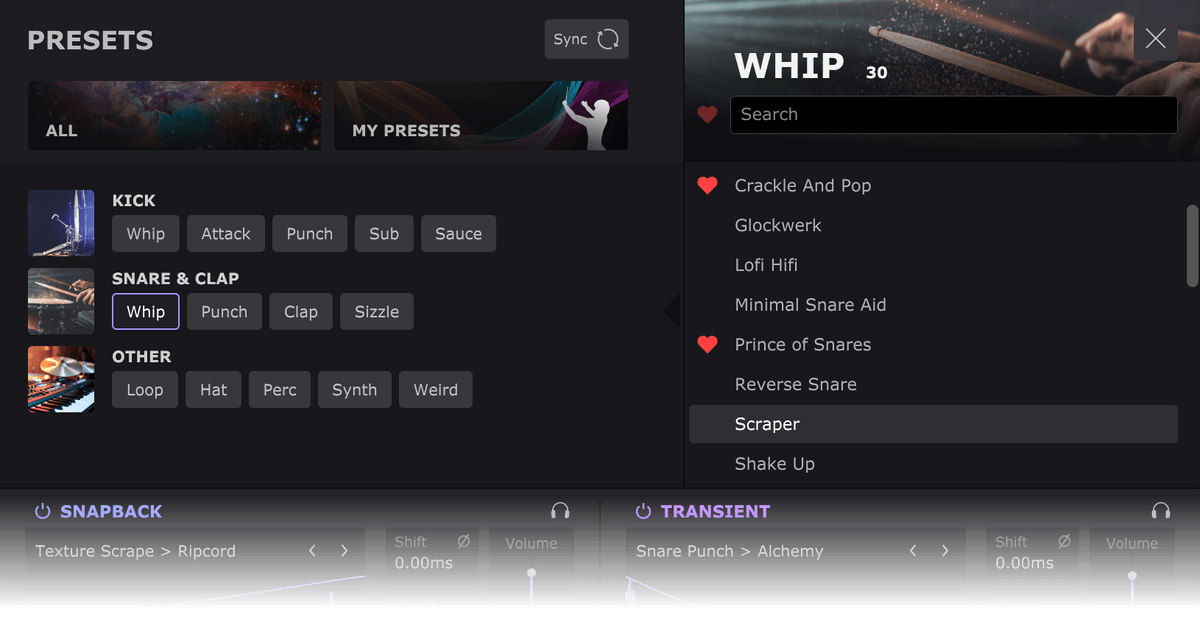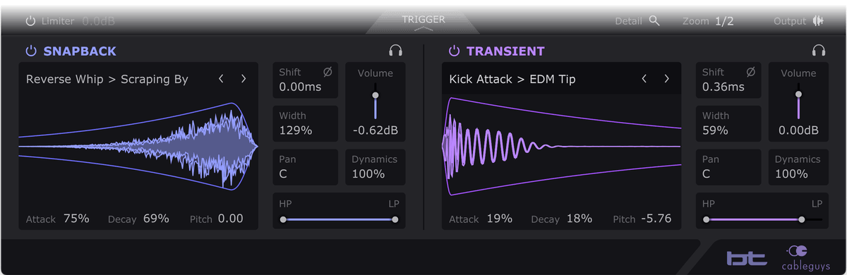 Choose your Transient and Snapback sounds and refine them in seconds with easy controls that work exactly the same way for both layers. There is no faster way to layer your drums.