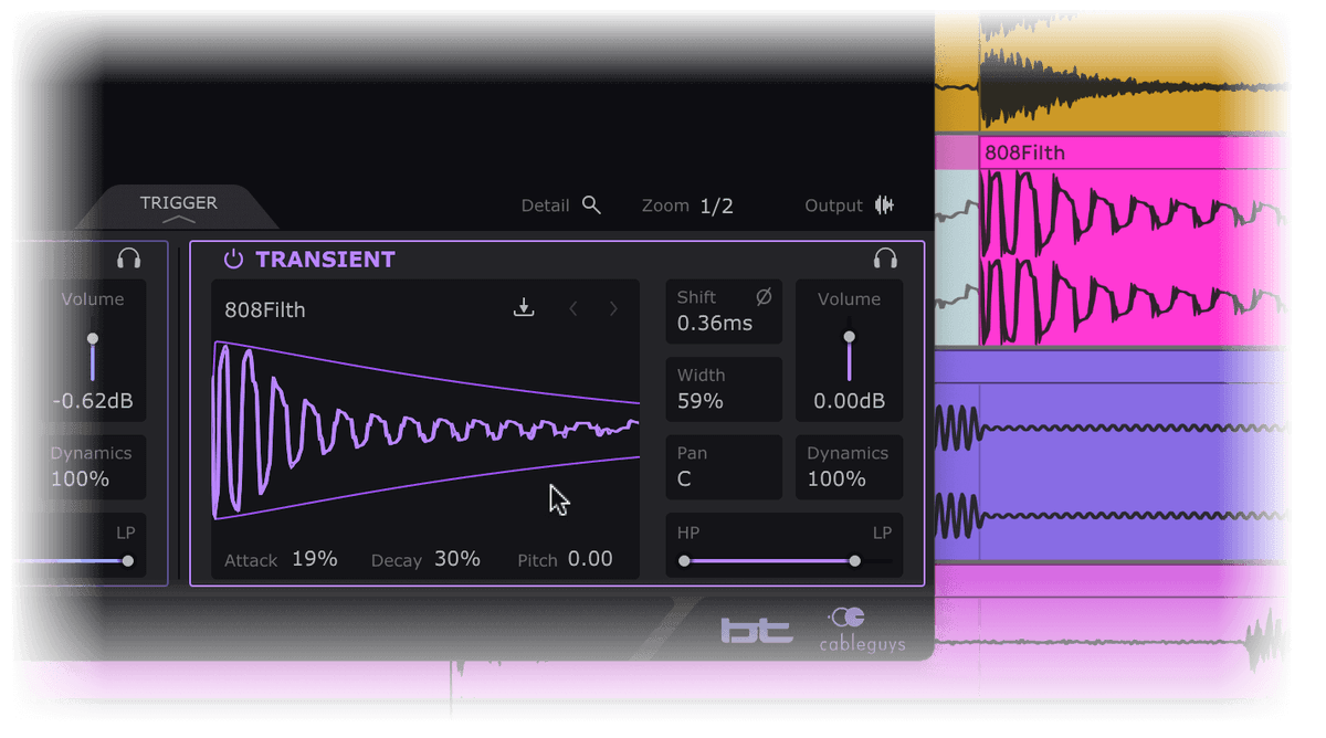Shape your transients and snapbacks in exquisite detail with the extra controls. Lock the layers tightly in phase with your drums, adjust their envelopes, transpose them and more.