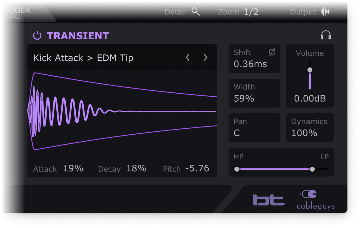 Easily understand your drum layers with the clear waveform display. See how it all sums together with Output mode and zoom right in with Detail view – your audio microscope for aligning transients.
