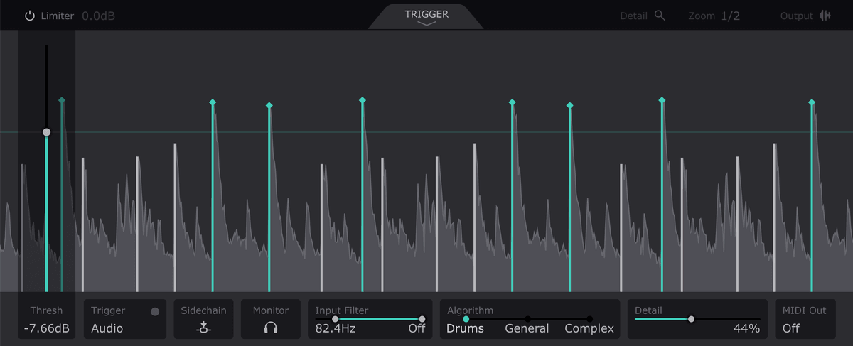 Fine-tune our world-class audio triggering with three modes, adjustable response and external sidechain. Trigger from MIDI for total control. And lock in your levels with the transient-aware Limiter.