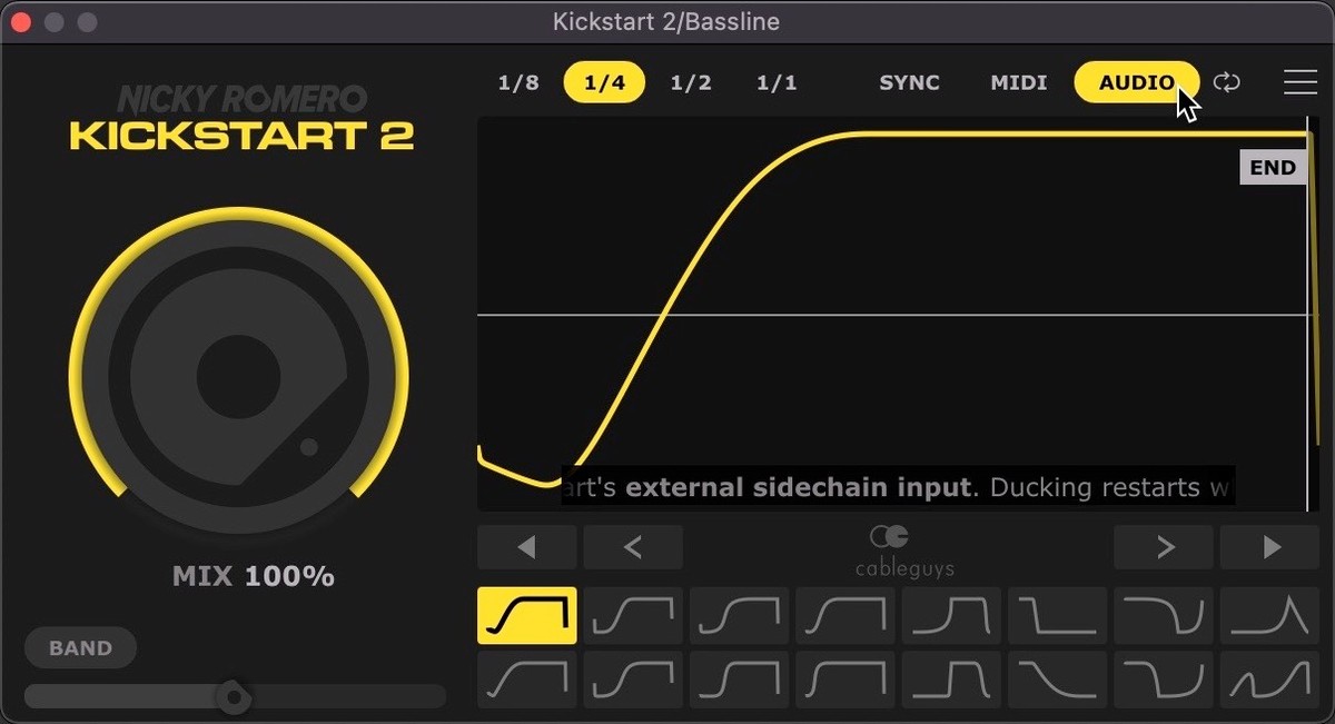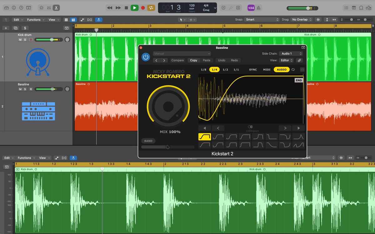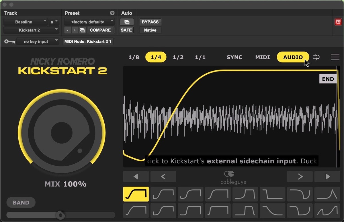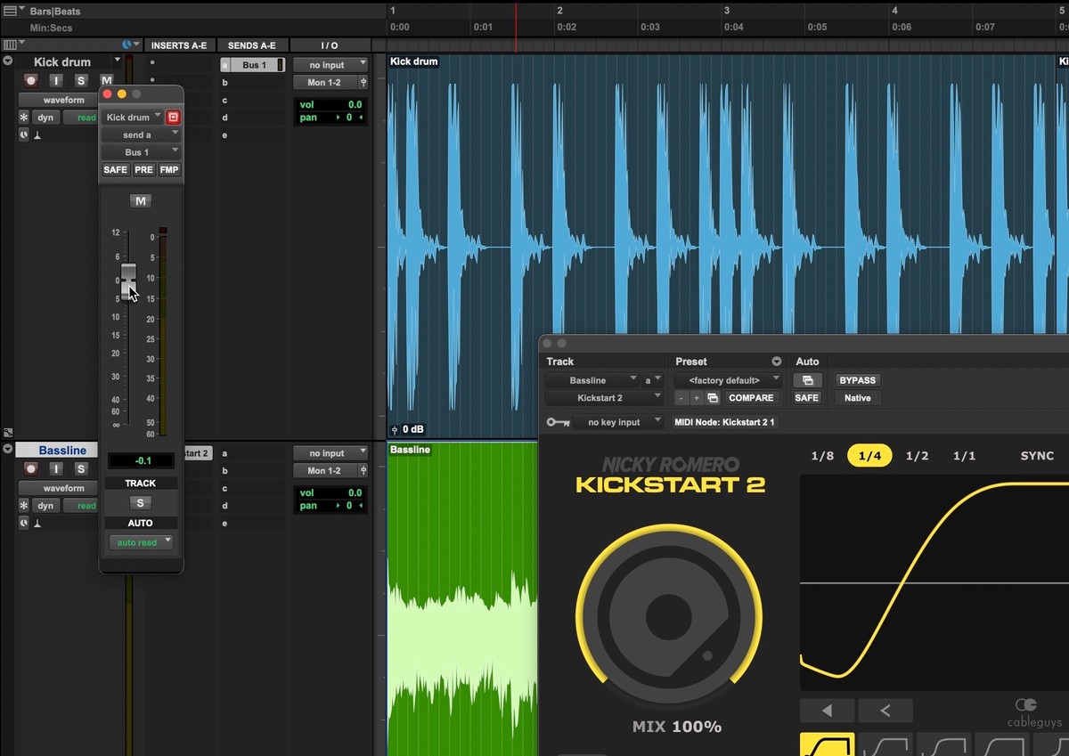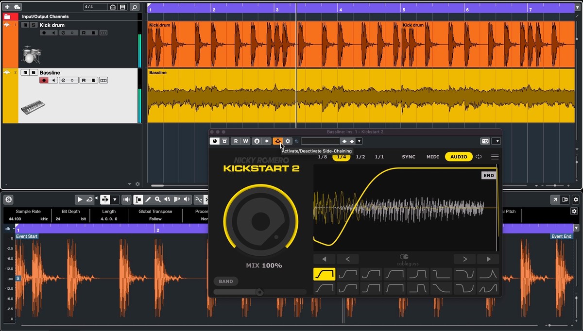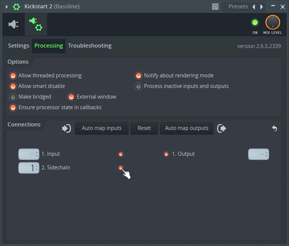 To use the Audio Trigger and Kick View features, Kickstart 2 needs to "hear" your kick drum track. This is done by routing the kick via your DAW into Kickstart's external sidechain input. Here's how to do it in the most popular DAWs.
