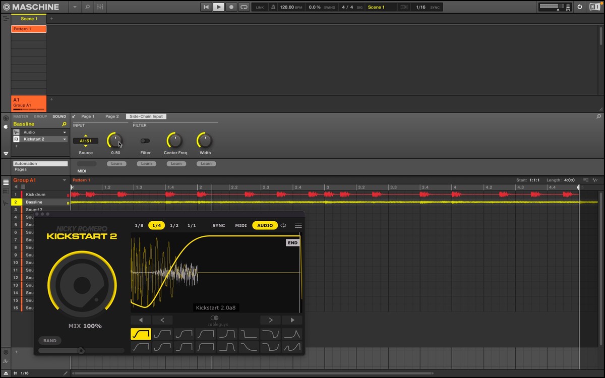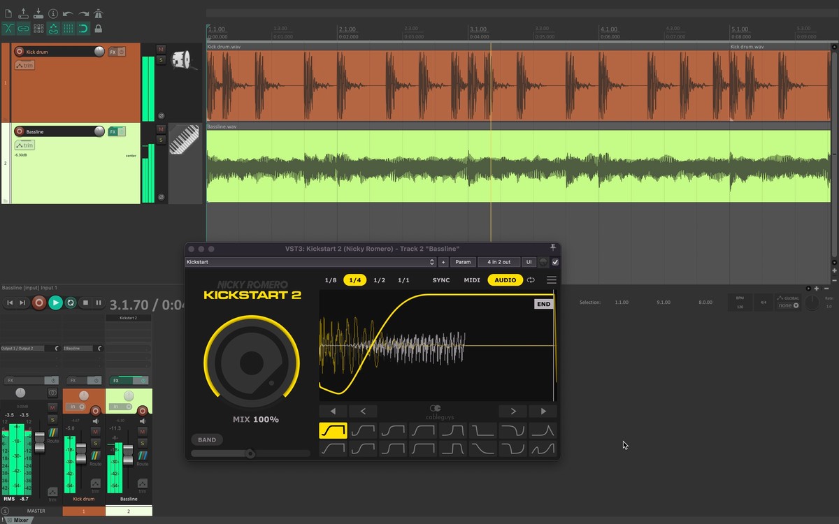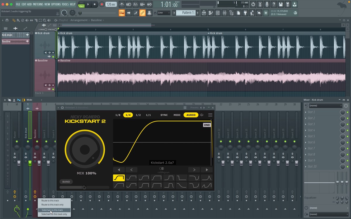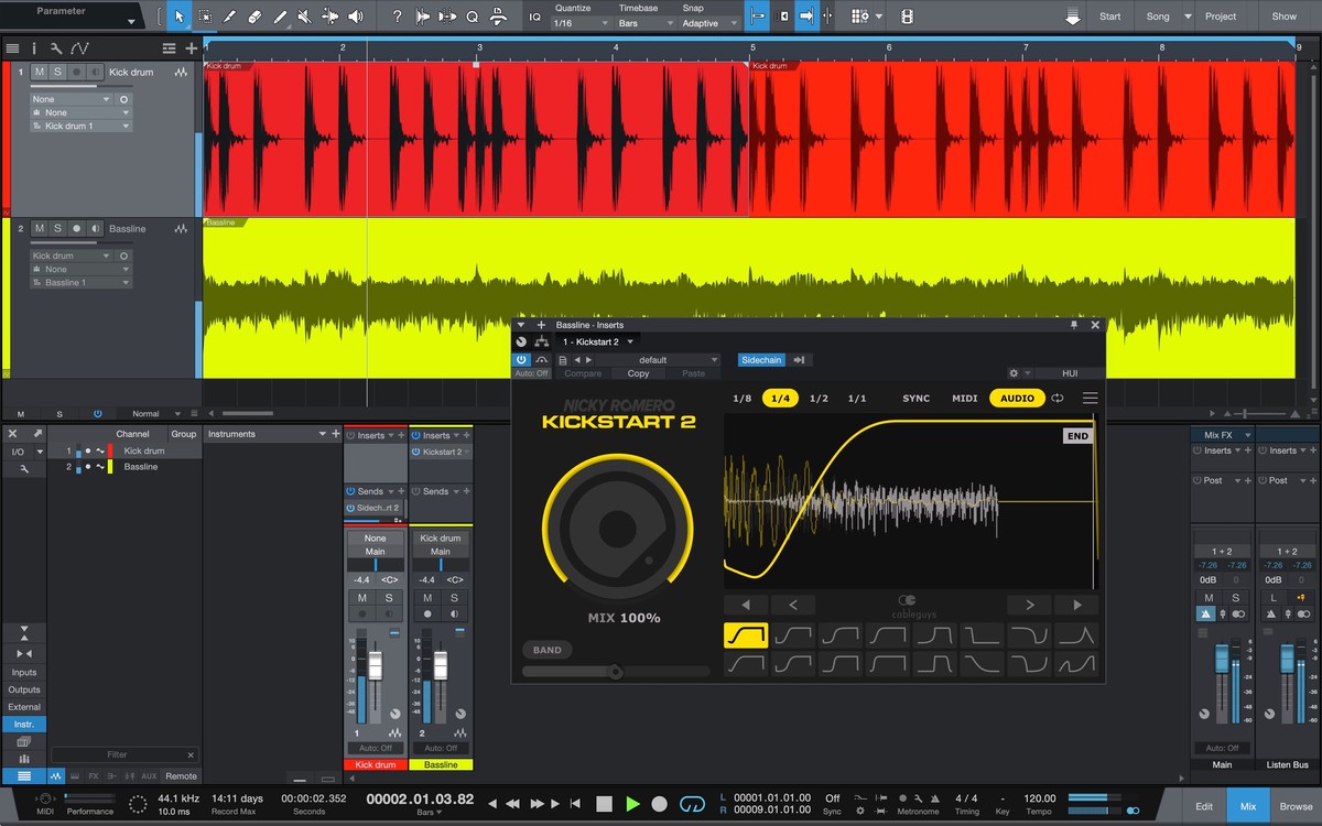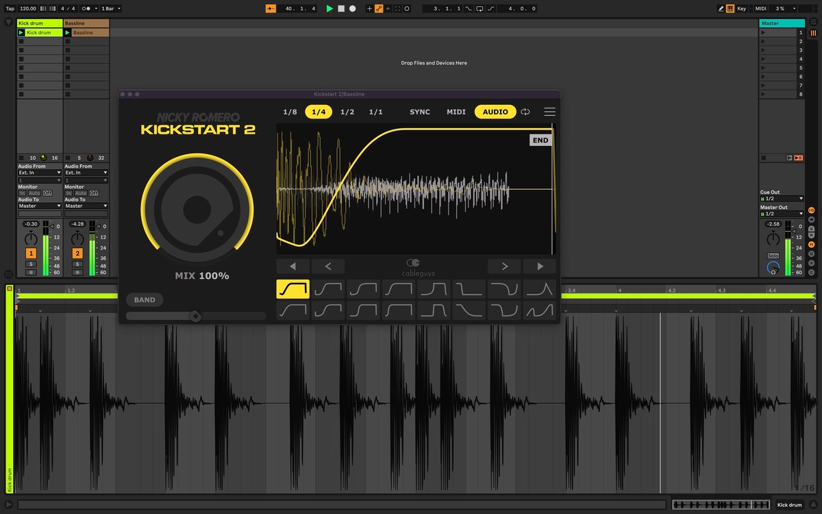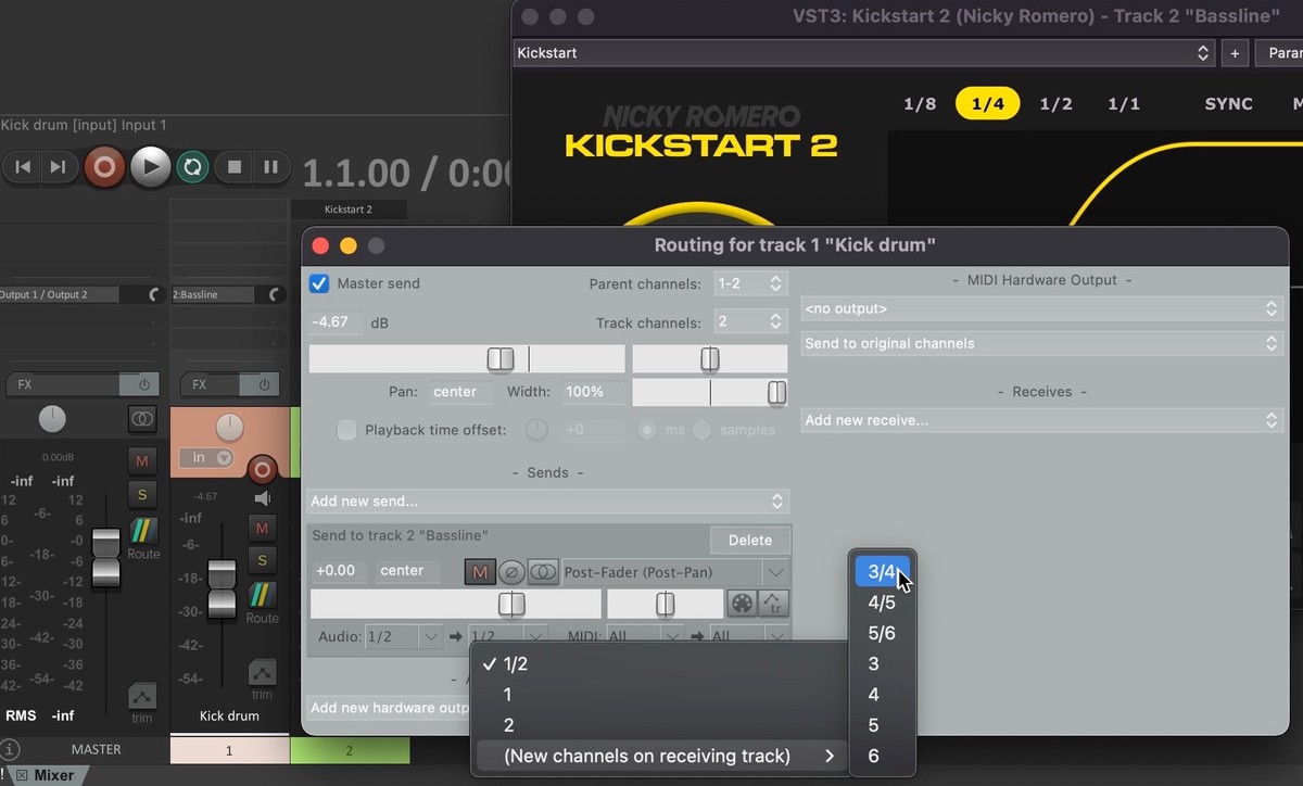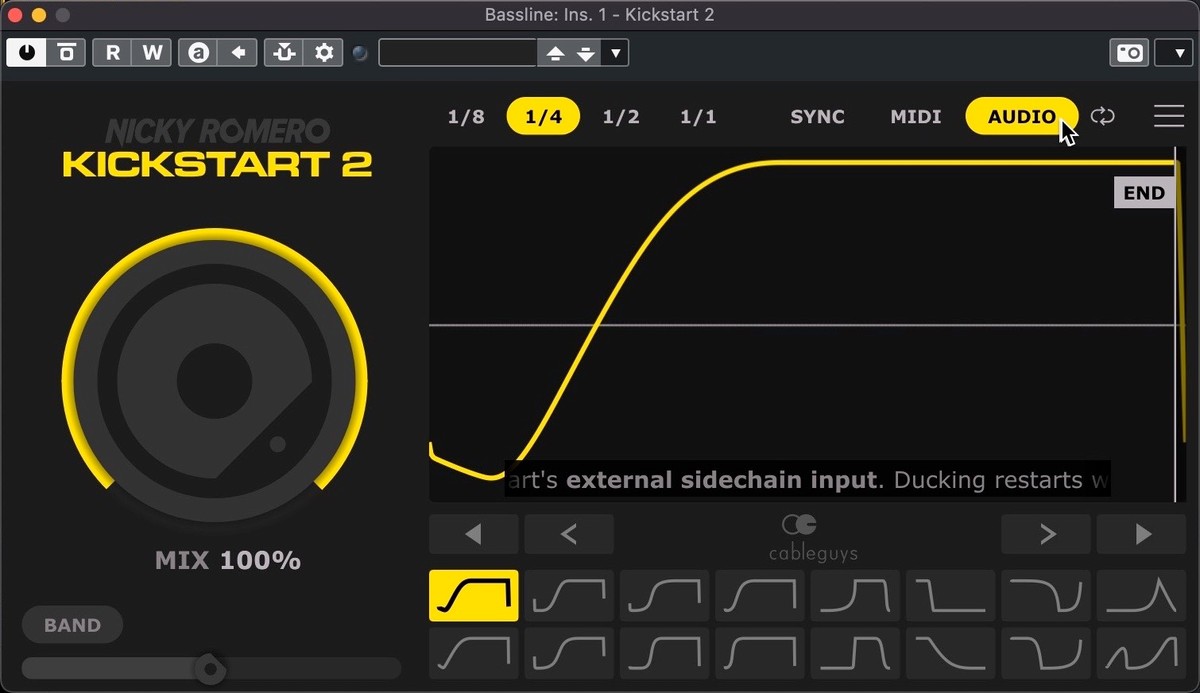 To use the Audio Trigger and Kick View features, Kickstart 2 needs to "hear" your kick drum track. This is done by routing the kick via your DAW into Kickstart's external sidechain input. Here's how to do it in the most popular DAWs.