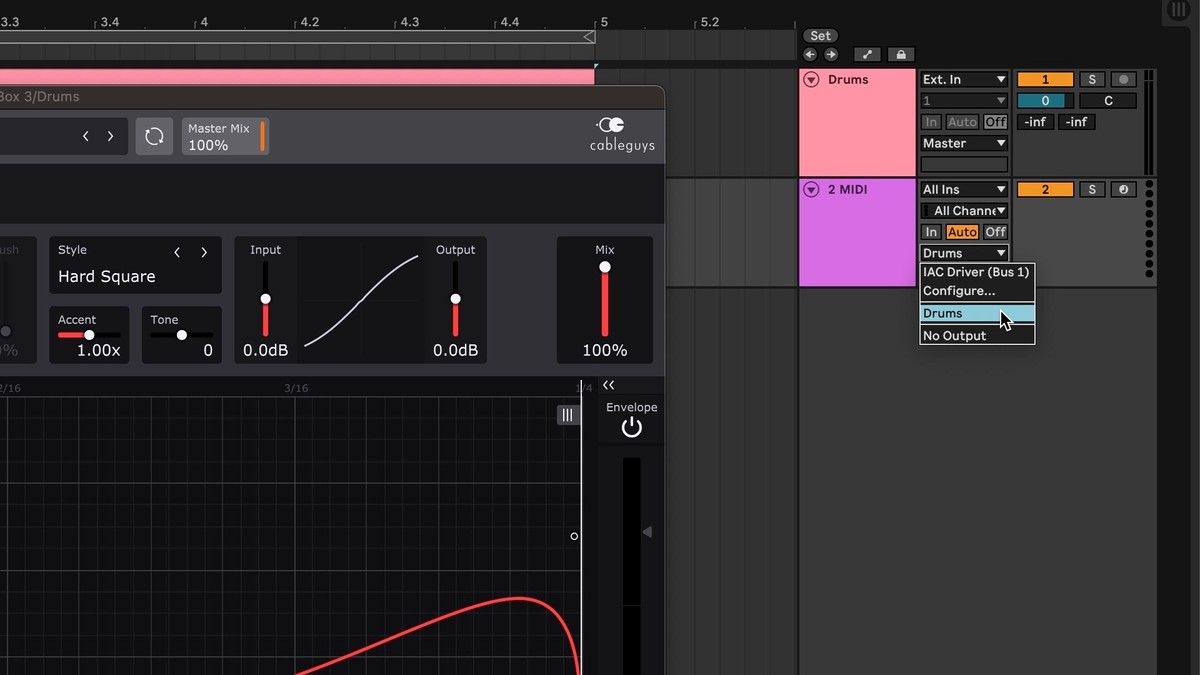 - On the MIDI track, set the Output to the Cableguys plugin.