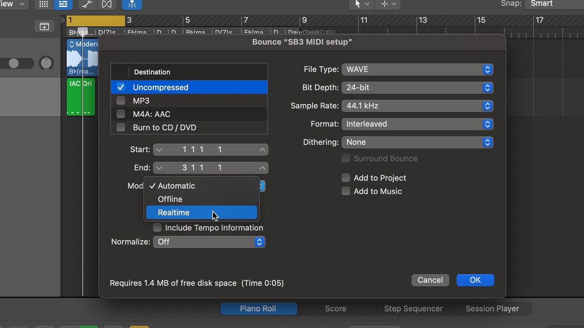 - Because the IAC virtual MIDI port routes MIDI out of and back into Logic, you must use 'Realtime bouncing' when you bounce your track. For more info, see Apple's related support page.