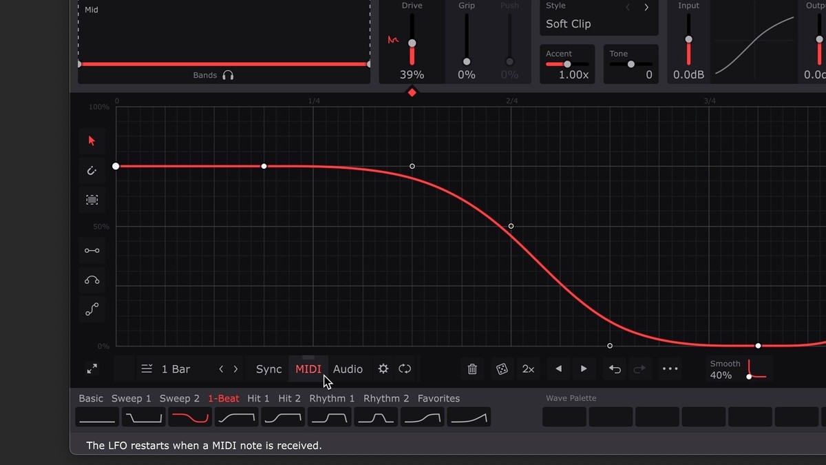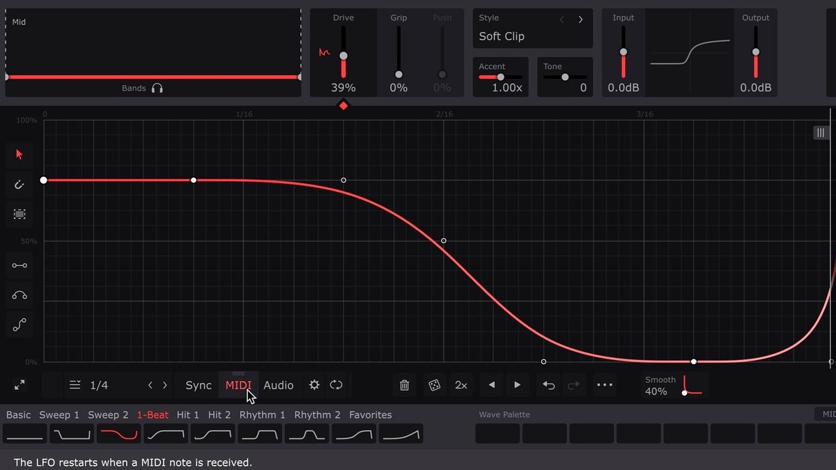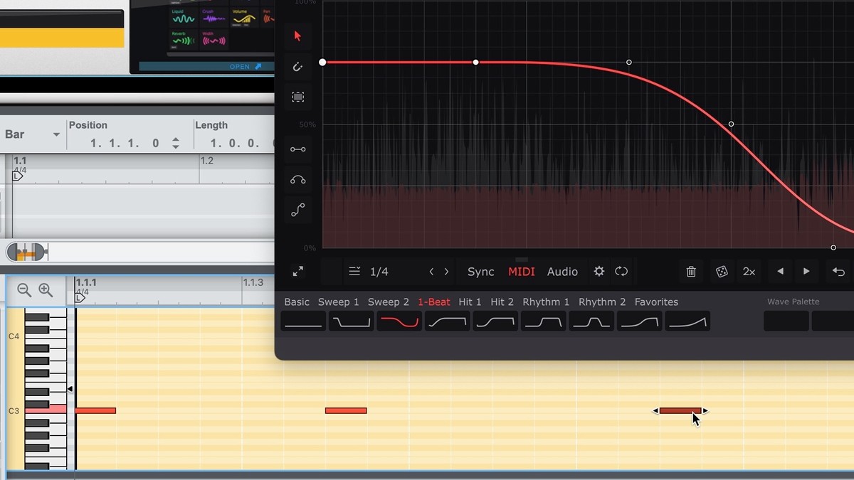 Now the Wave envelope/LFO will play from the beginning with each incoming MIDI note. Please see the manual for your Cableguys plugin for more on MIDI triggering.