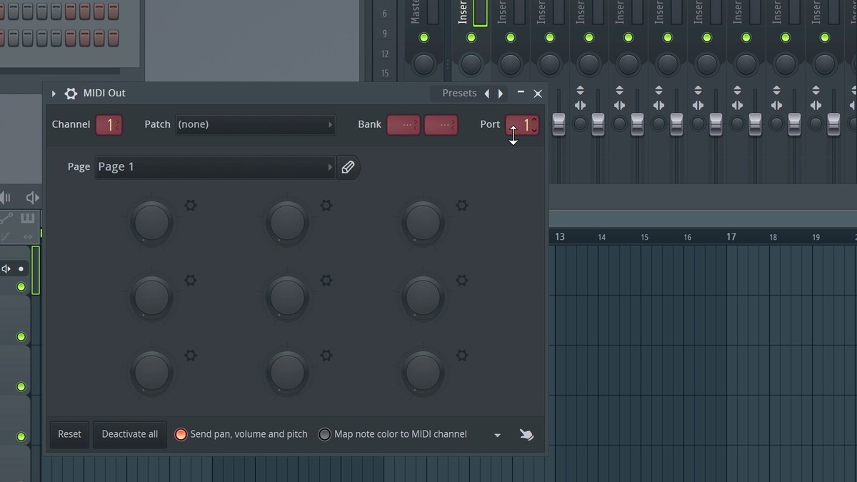 - Insert a MIDI Out plugin and set Port to the same port you selected in the previous step (for example, 1).