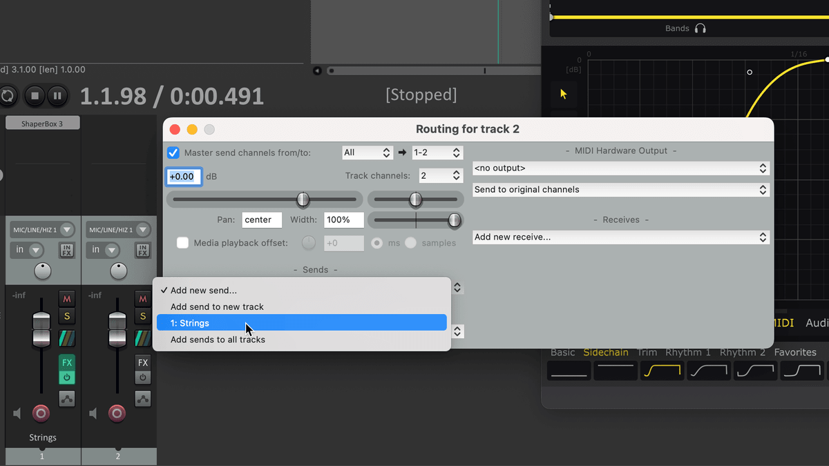 - Reaper's MIDI routing allows you to send MIDI from one track to multiple Cableguys plugins using the 'Send' functionality.